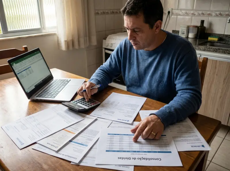 Consulte diferentes instituições — bancos, fintechs, cooperativas — pedindo simulações de empréstimo consolidado. Compare taxas de juros, prazos, taxas de contratação e seguro obrigatório.